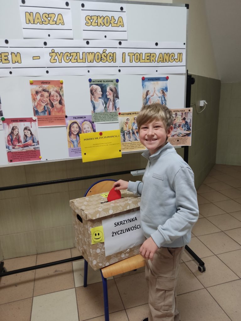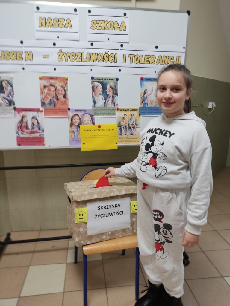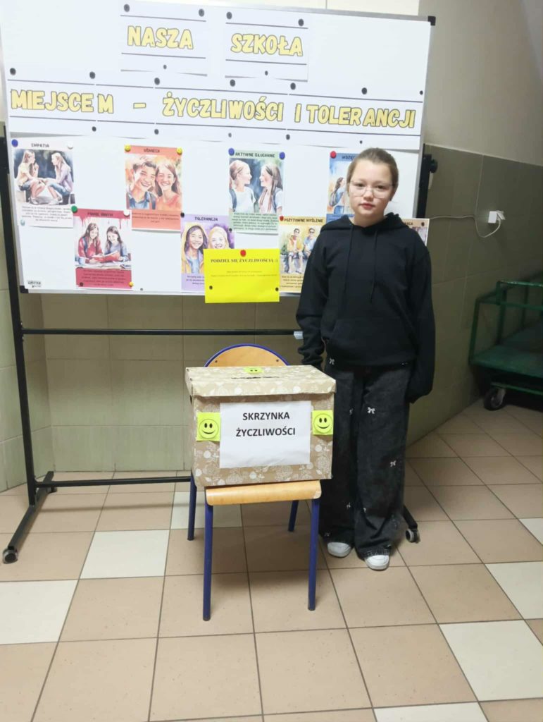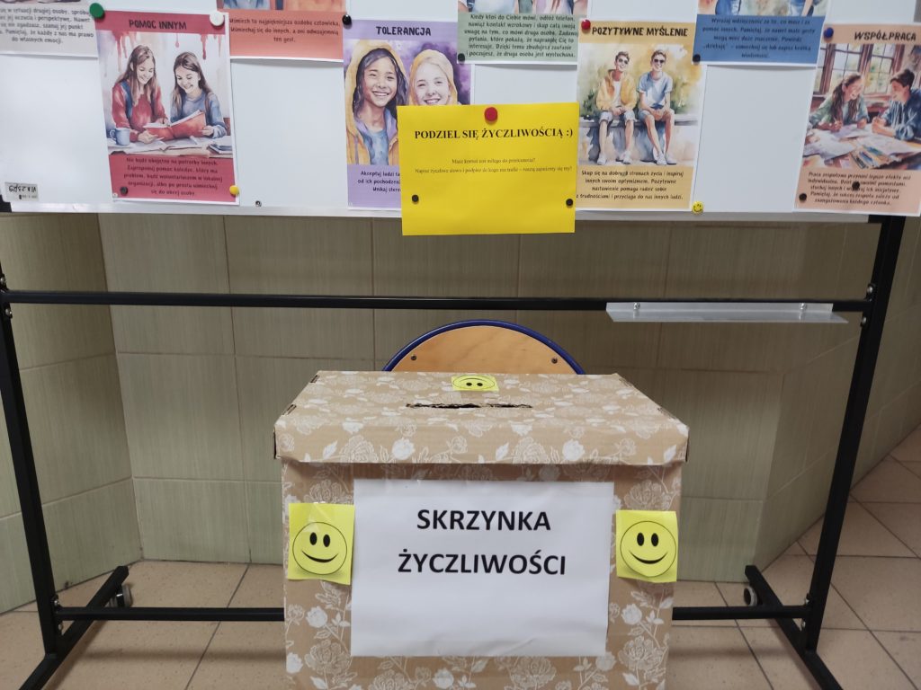 • Skrzynka Życzliwości: Uczniowie, nauczyciele i pracownicy szkoły mieli okazję anonimowo lub z podpisem wrzucać do specjalnej skrzynki listy, karteczki z miłymi słowami, podziękowaniami czy pozytywnymi myślami, które następnie trafiły do adresatów.