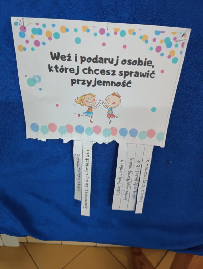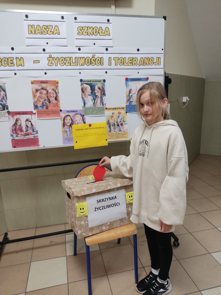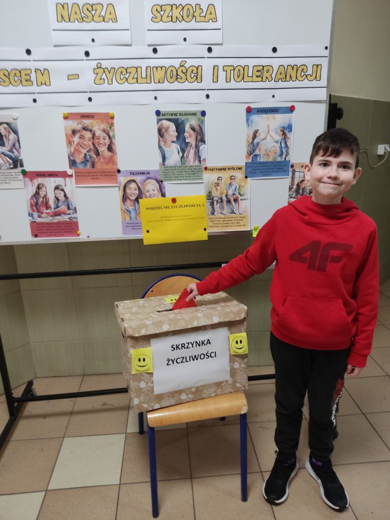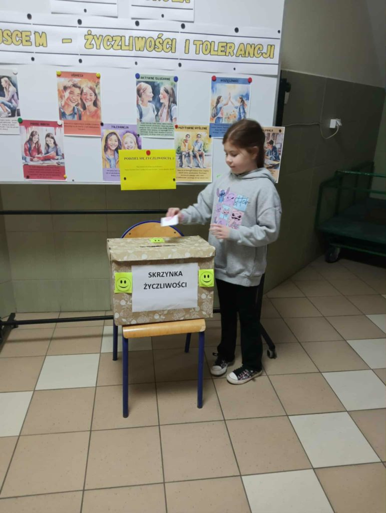 • Skrzynka Życzliwości: Uczniowie, nauczyciele i pracownicy szkoły mieli okazję anonimowo lub z podpisem wrzucać do specjalnej skrzynki listy, karteczki z miłymi słowami, podziękowaniami czy pozytywnymi myślami, które następnie trafiły do adresatów.