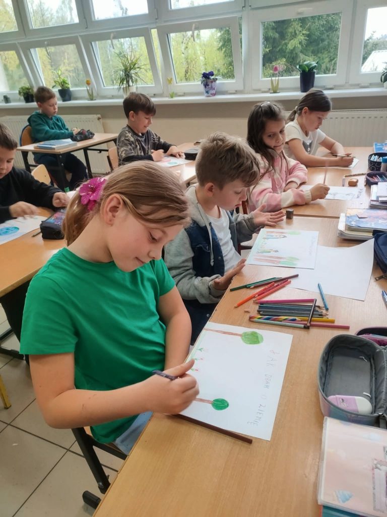 Dodatkowo w klasach 1–3 zorganizowano międzyklasowy konkurs plastyczny, który wzbudził wiele emocji i zaangażowania wśród najmłodszych uczniów.