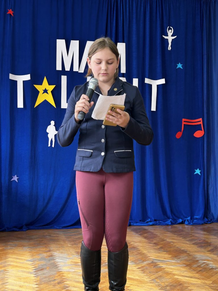 Dnia 29 maja 2025r. w naszej szkole odbył się Szkolny Konkurs „ Mam Talent”. Uczniowie mogli zaprezentować swoje umiejętności i pasje. Konkurs miał na celu rozwijanie kreatywności uczniów, promowanie i odkrywanie nowych talentów, popularyzację działań artystycznych oraz propagowanie alternatywnych form spędzania wolnego czasu. Mimo towarzyszącej tremy, wszyscy spisali się świetnie, wykazując nieprzeciętny talent.