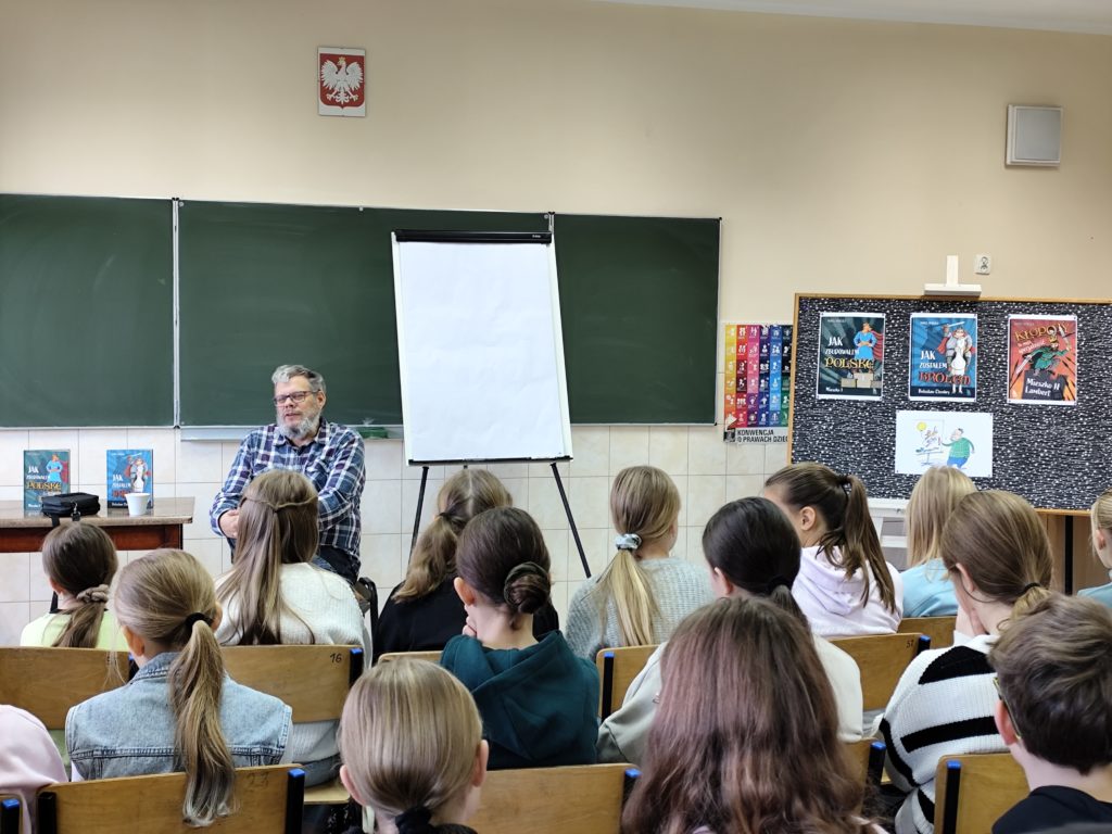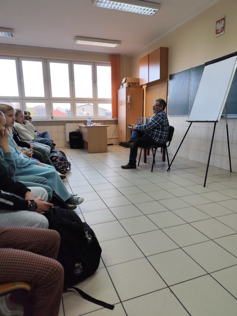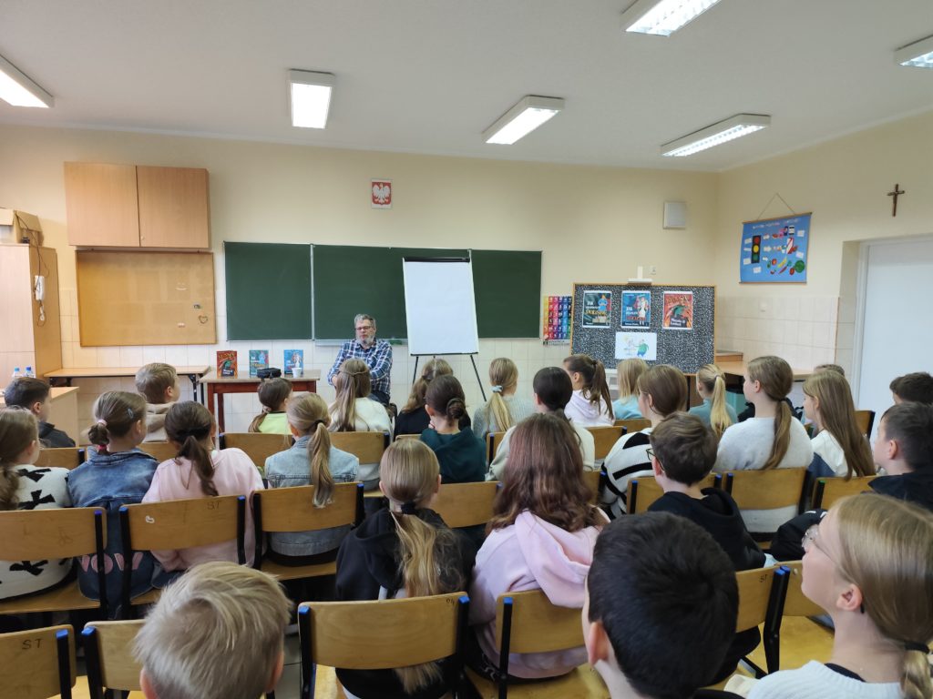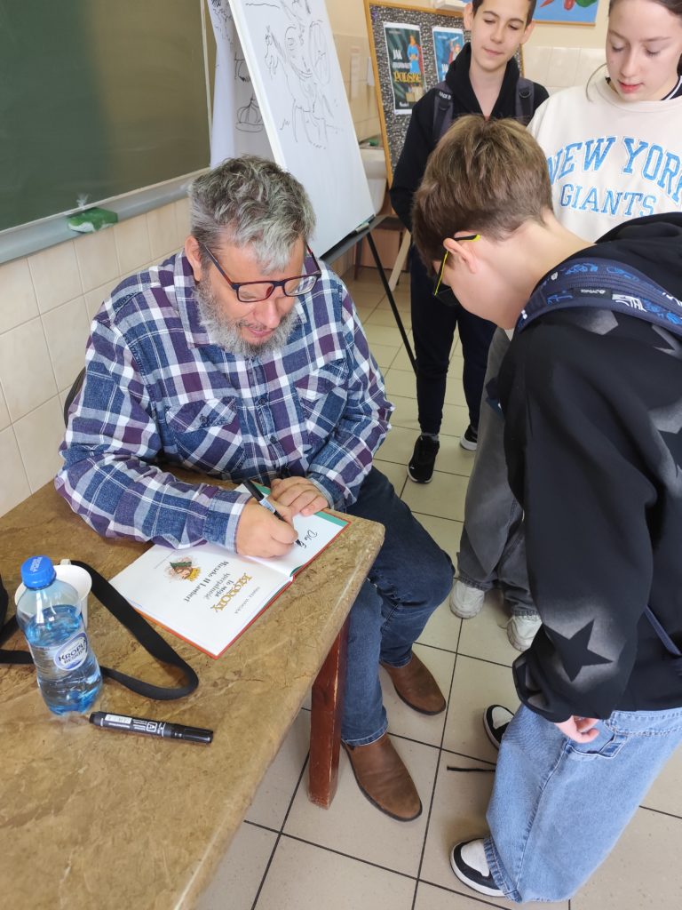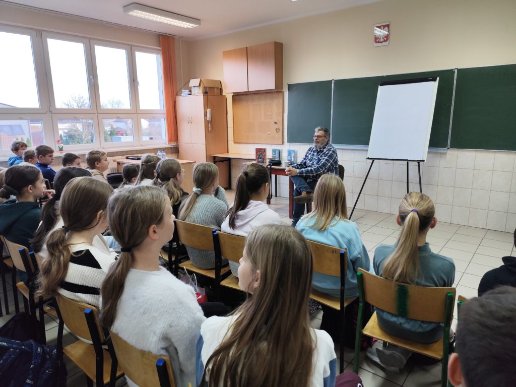 Po prelekcji uczniowie chętnie zadawali pytania dotyczące książek i inspiracji twórczych. Spotkanie zakończyło się możliwością zdobycia autografu i krótkiej rozmowy z autorem.