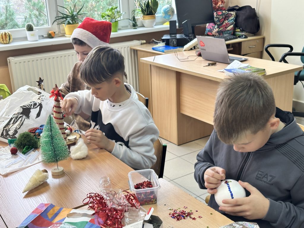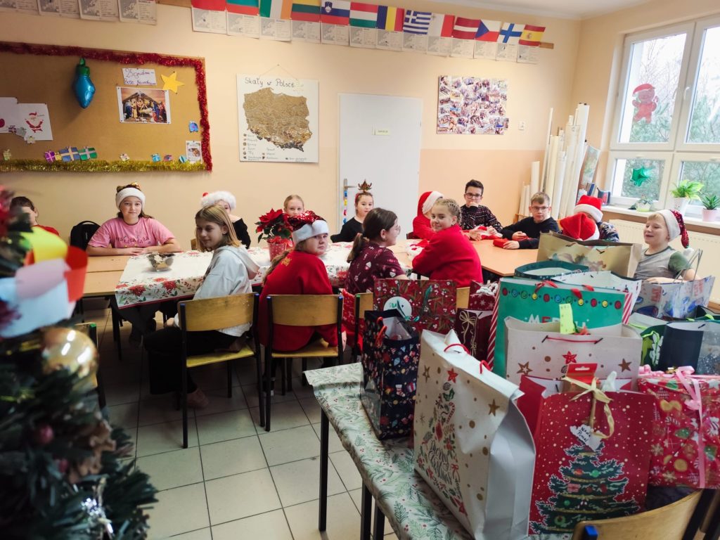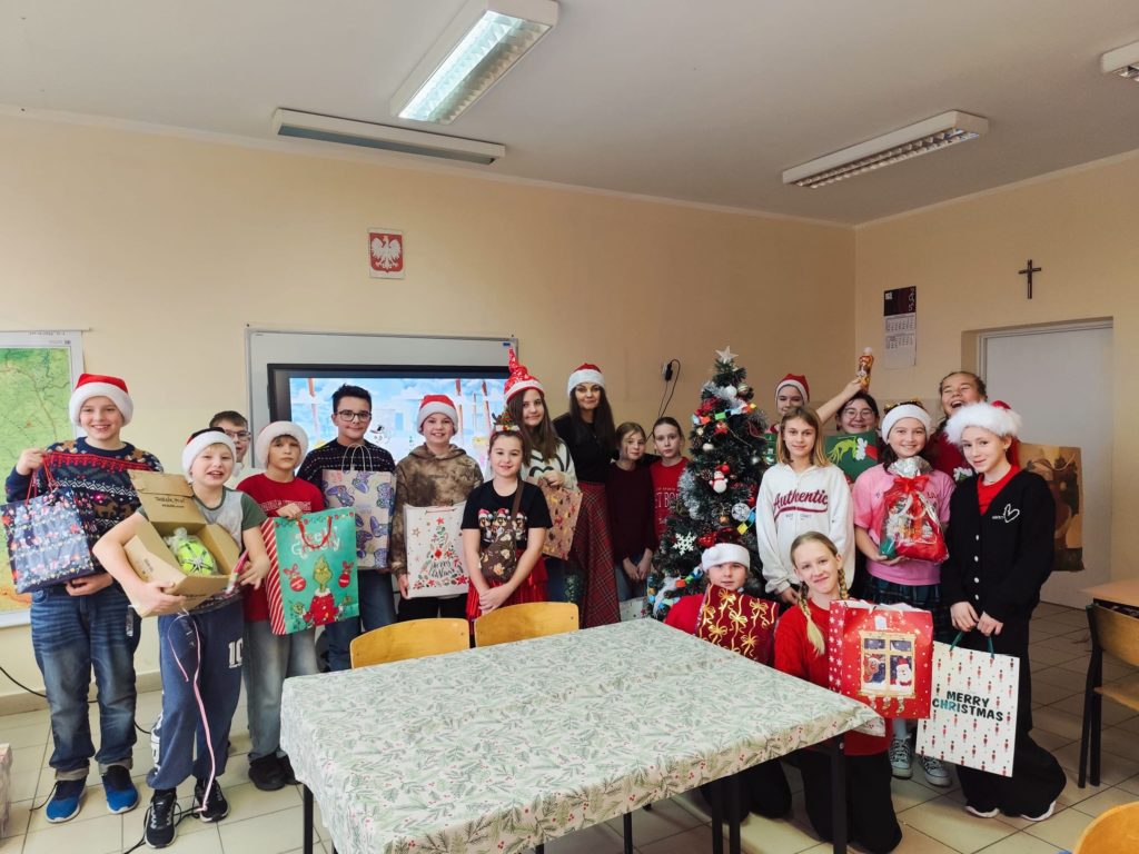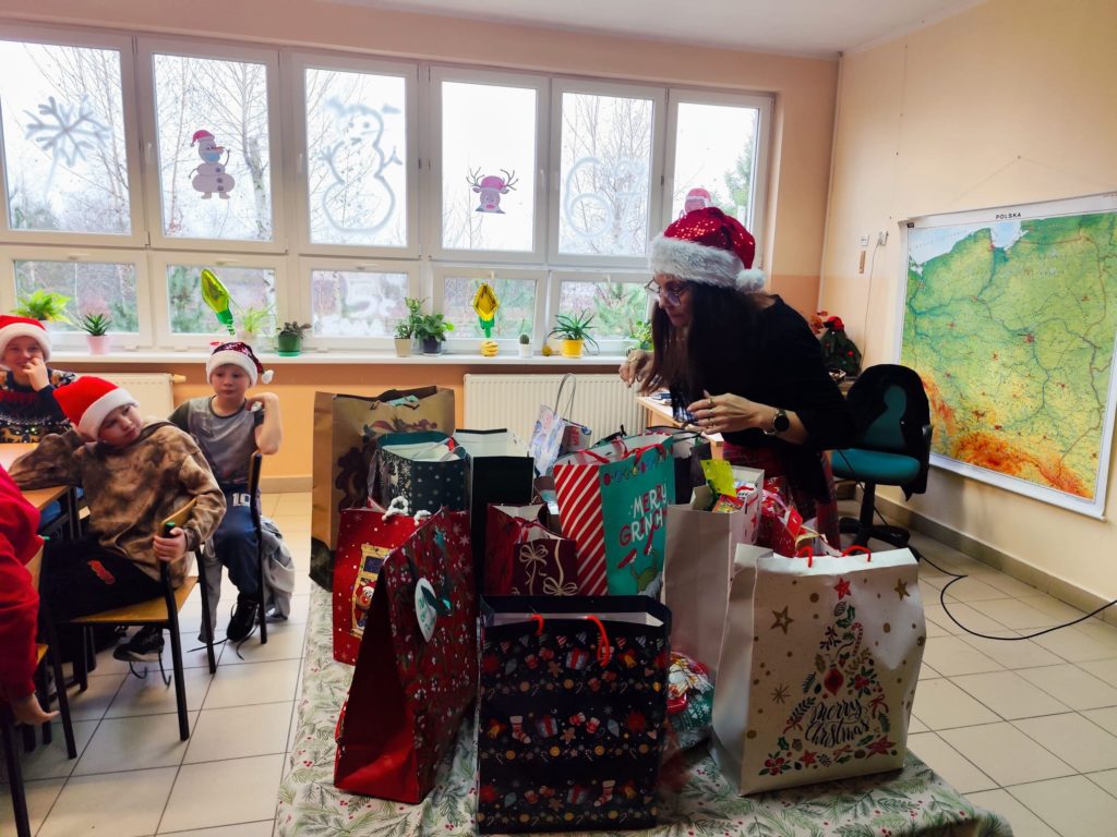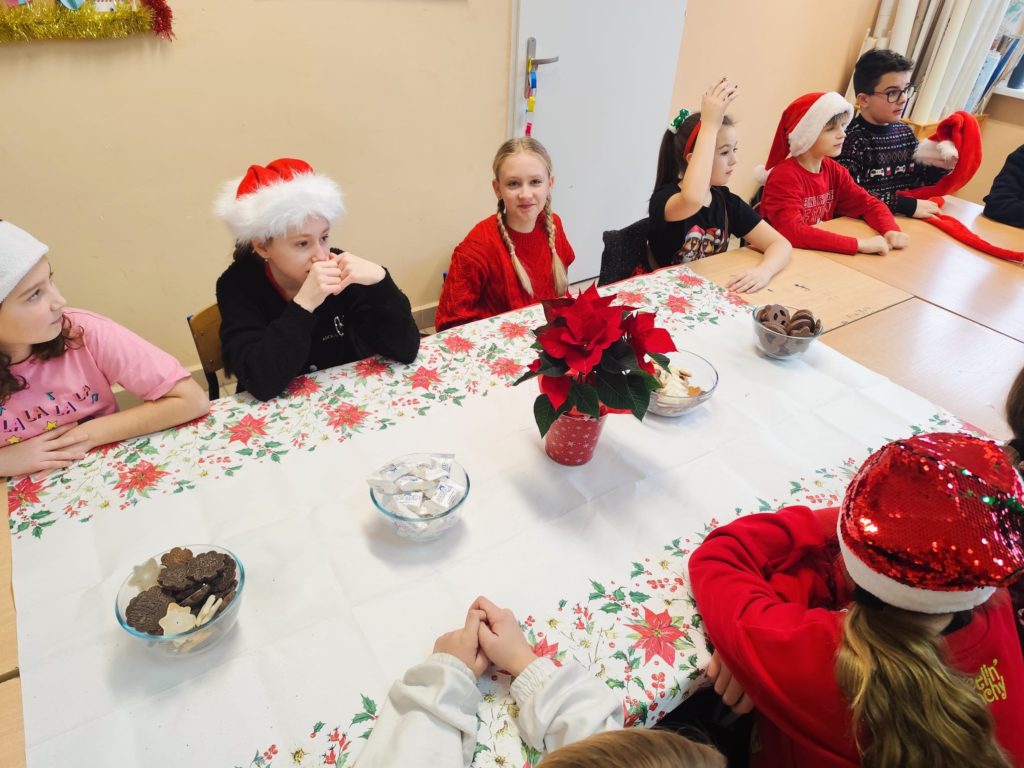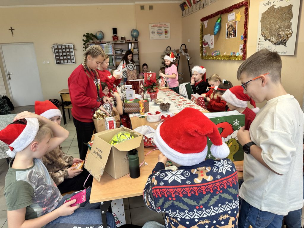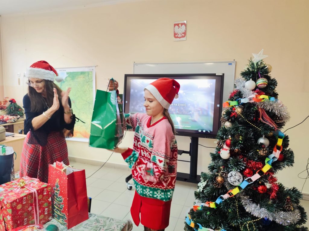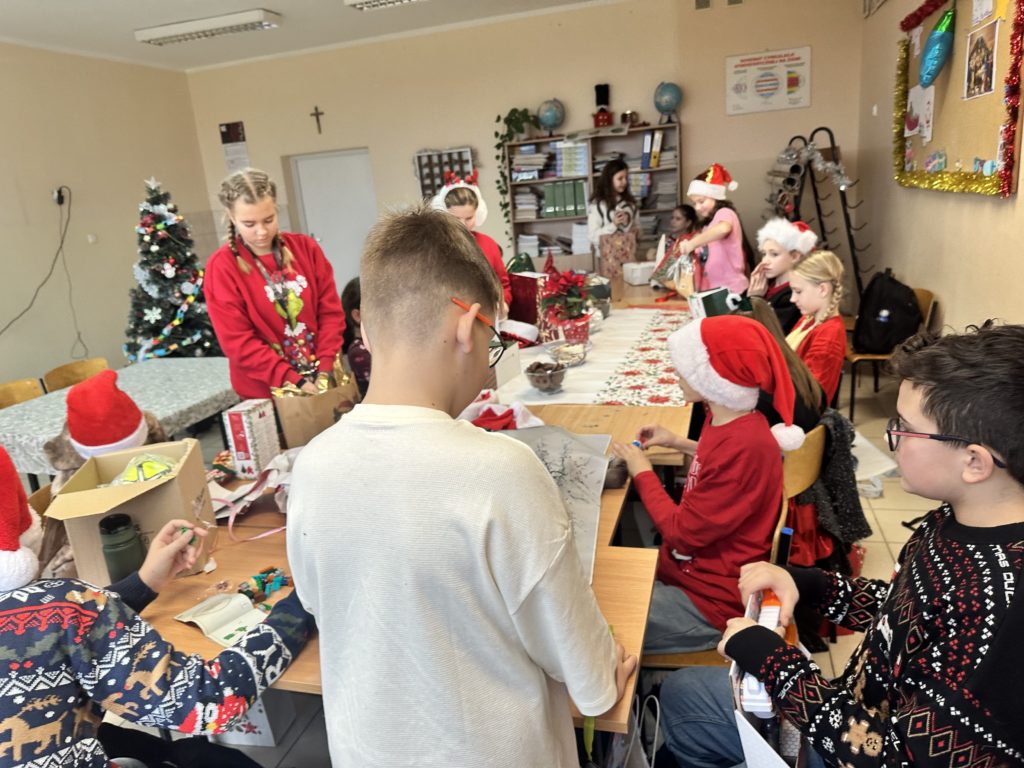 Dzień upłynął w atmosferze radości i niespodzianek — każdy uczeń przygotował paczkę mikołajkową dla wylosowanej osoby. Nie zabrakło świątecznej muzyki, słodkiego poczęstunku i wielu uśmiechów. To był wyjątkowy dzień pełen ciepła i dobrej zabawy, który wprowadził wszystkich w świąteczny nastrój.