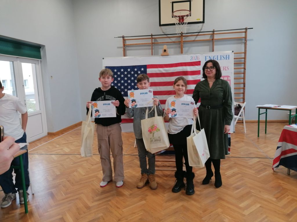 12 lutego 2026r. był bardzo ważnym dniem dla naszej szkoły. Zdobyliśmy pierwsze miejsce w Gminnym Konkursie Języka Angielskiego English Masters organizowanego w Szkole Podstawowej im Marii Skłodowskiej Curie w Żukach.