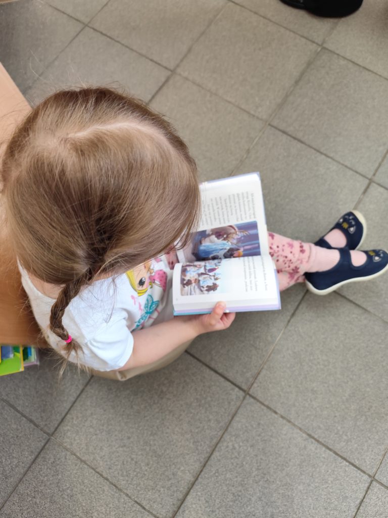 - z zainteresowaniem oglądały kolorowe wydania bajek i bogato ilustrowane albumy;